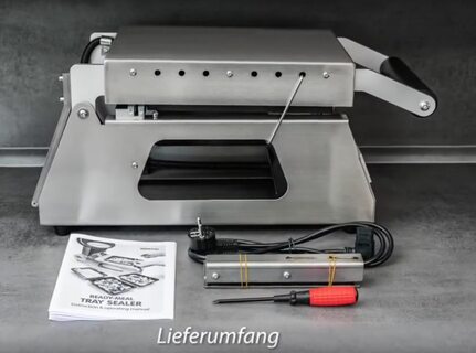 Siegelgerät WX-78600 - 700 Watt / 230 Volt inkl. 320 Menüschalen 2-geteilt, Siegelfolie und passendem Siegelrahmenahmen