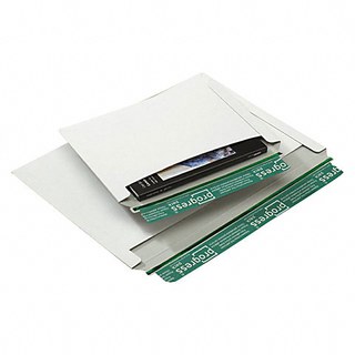 progressPACK MAILER Versandtasche Querbefüllung aus Vollpappe weiß mit Selbstklebeverschluss und Aufreißfaden 320/225